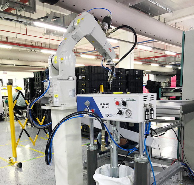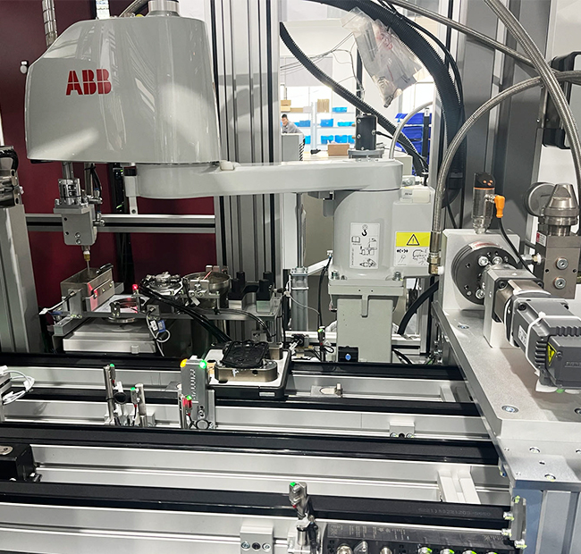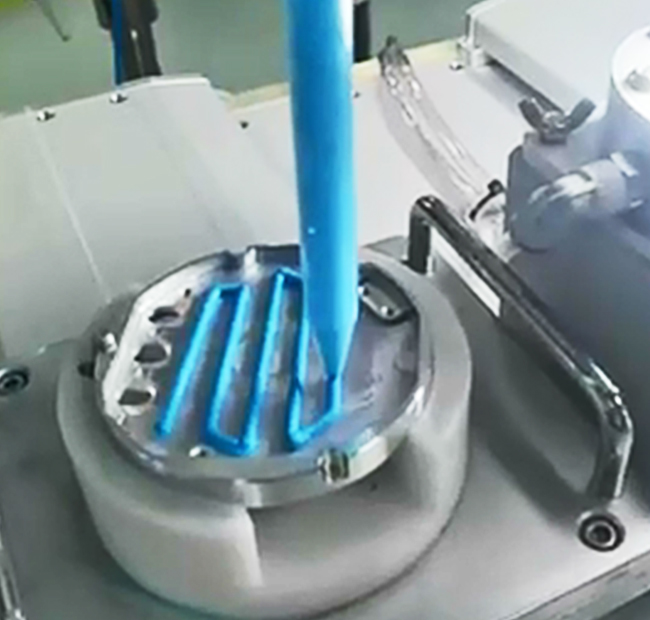 進(jìn)行精密涂膠操作,如涂膠存在角度問題,可考慮用四軸方案解決。